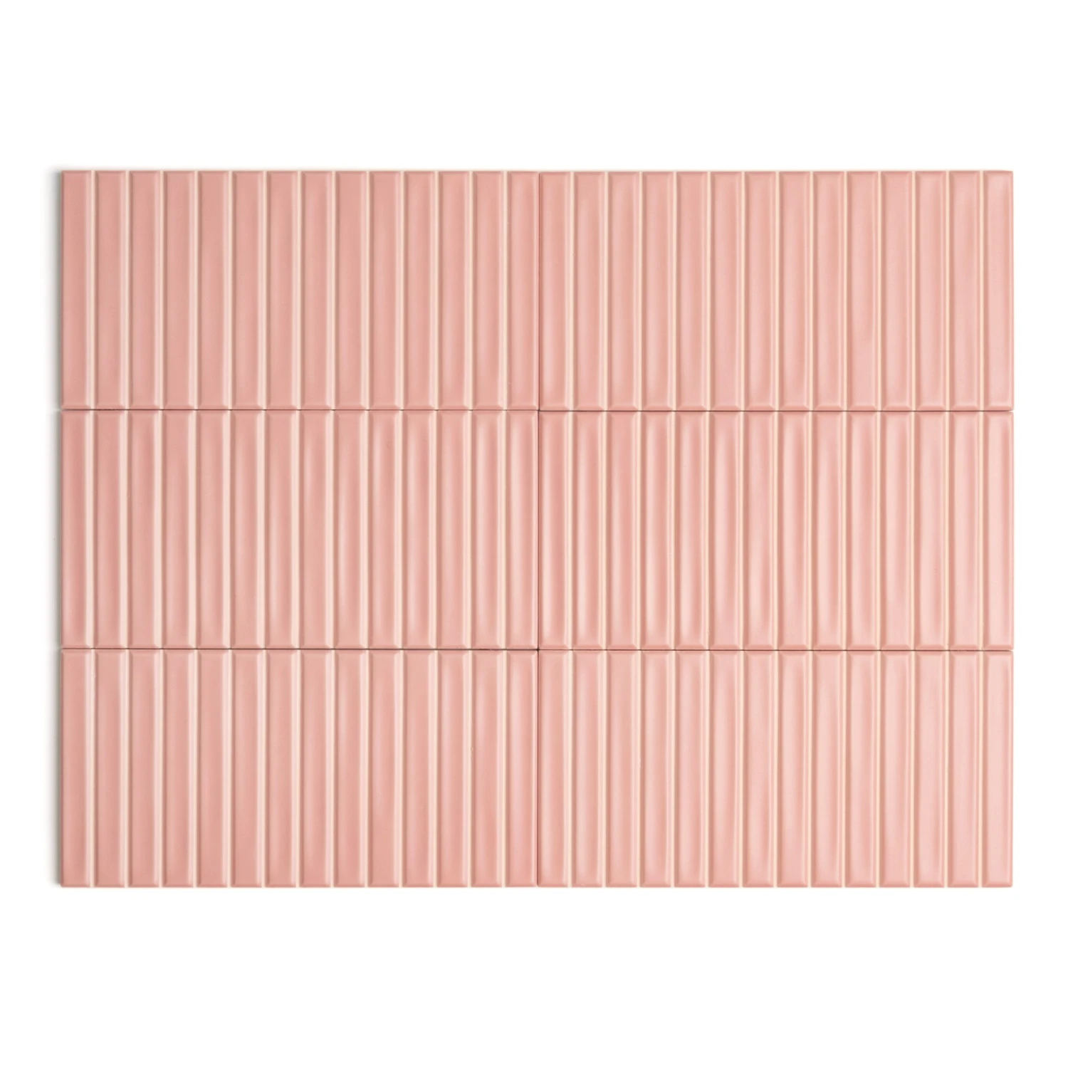 Each tile measures 12.5 x 25 cm and features 14 vertical bars. The bars are separated by scored joints, which are then grouted over. This gives you the look and feel of contemporary kit-kit mosaics, but are much easier to install.