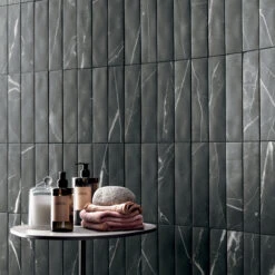 With midnight tones and lashings of glossy glaze, they’re a luxe take on traditional ‘majolica’ tiling – combining the hallmarks of handmade design with the durability of modern porcelain.