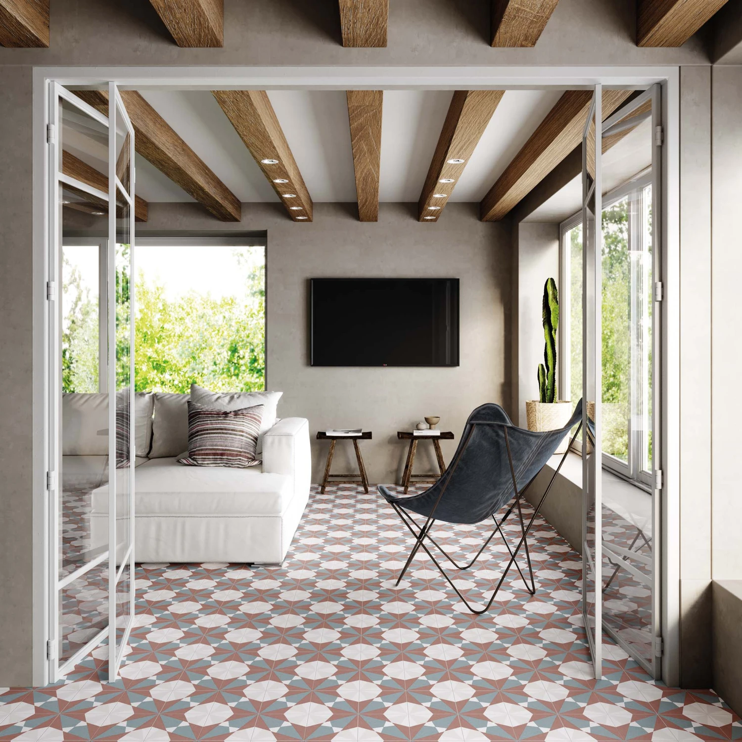With punchy colouring and a larger-than-life geometric pattern, they’ll help you create floors and walls that are made to catch the eye. Their retro styling is perfect for all kinds of interiors, whether you’re looking for an alternative to traditional monochrome hallway tiles or looking to add a dynamic twist to your bathroom floor.
