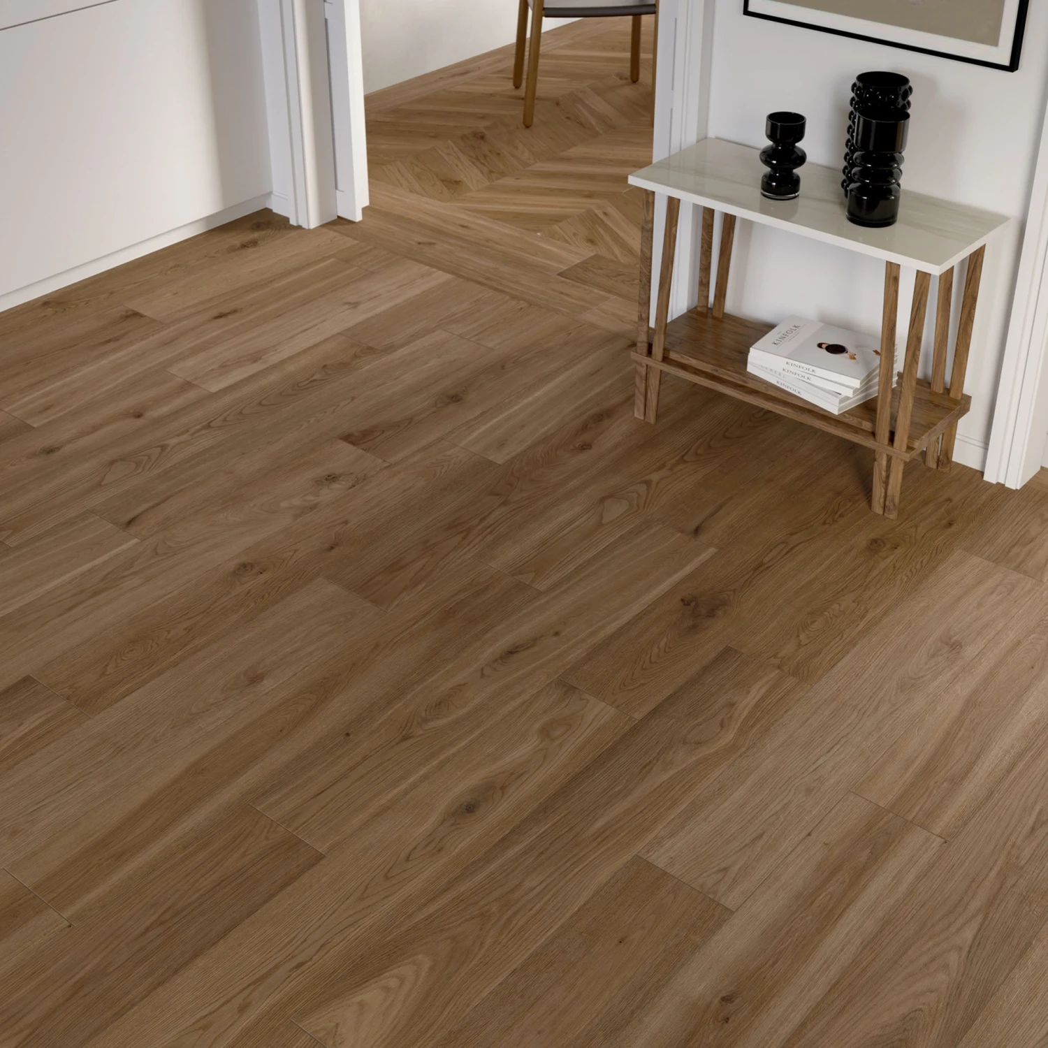 Just like a real wood floor, these porcelain tiles are a feast for the senses. So they’re not just about handsome looks – they feel incredible underfoot, as well. Their surface is soft to the touch, with a gentle texture that’s reminiscent of hand-planed timber – there’s even the sensation of oiled wood. Take it from us, you won’t be able to stop running your hands over your new floor!