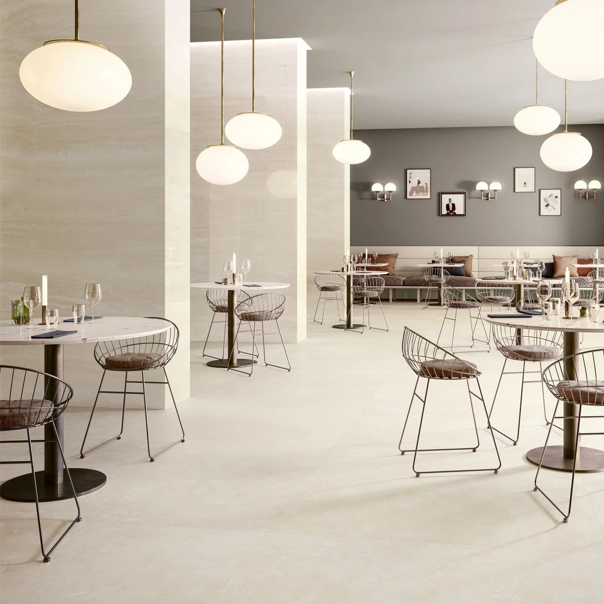 These porcelain tiles are based on ‘Navona’ travertine, an elegant natural stone that’s been mined for over two thousand years.